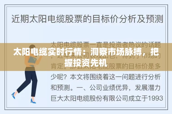 太阳电缆实时行情:洞察市场脉搏,把握投资先机