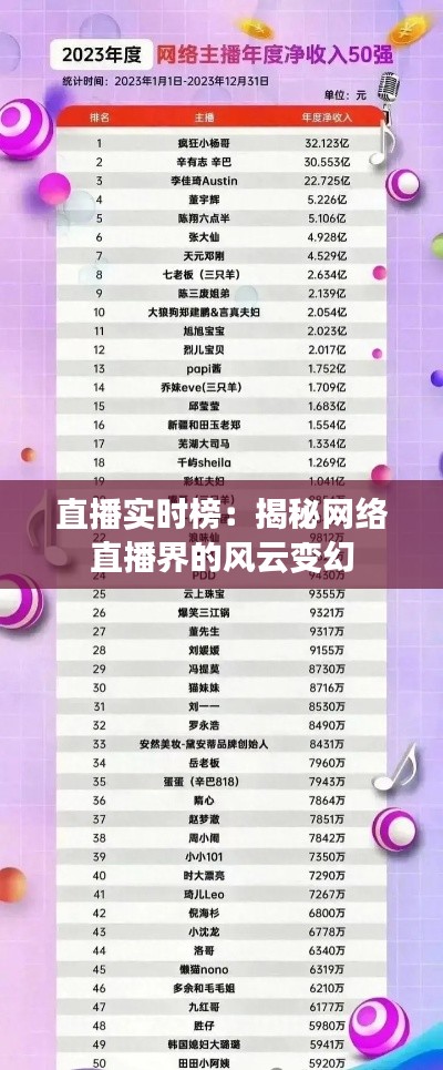 标题:直播实时榜:揭秘网络直播界的风云变幻
