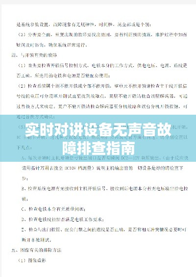 实时对讲设备无声音的问题可能由多种原因引起,通过上述故障排查步骤,用户可以自行解决大部分问题。如问题依然存在,建议联系专业技术人员进行维修。在日常使用中,注意设备保养和正确操作,可以有效避免此类问题的发生。