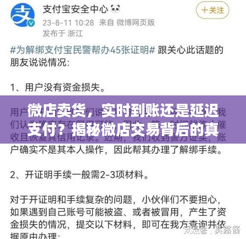 标题:微店卖货,实时到账还是延迟支付?揭秘微店交易背后的真相