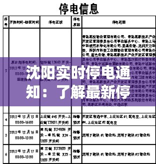 沈阳实时停电通知的发布,是沈阳市供电公司为了保障市民生活和工作而采取的一项重要措施。市民应积极关注停电信息,做好停电准备,共同维护城市的正常秩序。