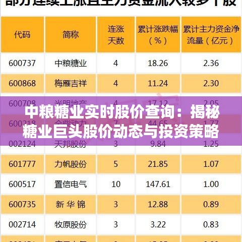 标题:中粮糖业实时股价查询:揭秘糖业巨头股价动态与投资策略