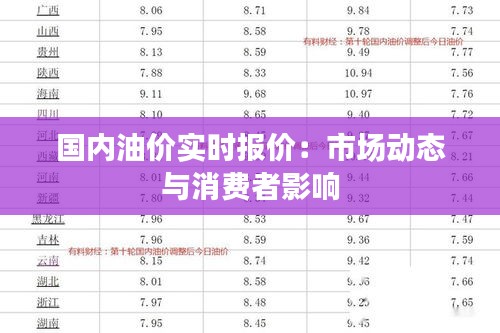 转载请注明来自武汉厨博士餐饮管理有限公司,本文标题:《国内油价实时报价:市场动态与消费者影响》