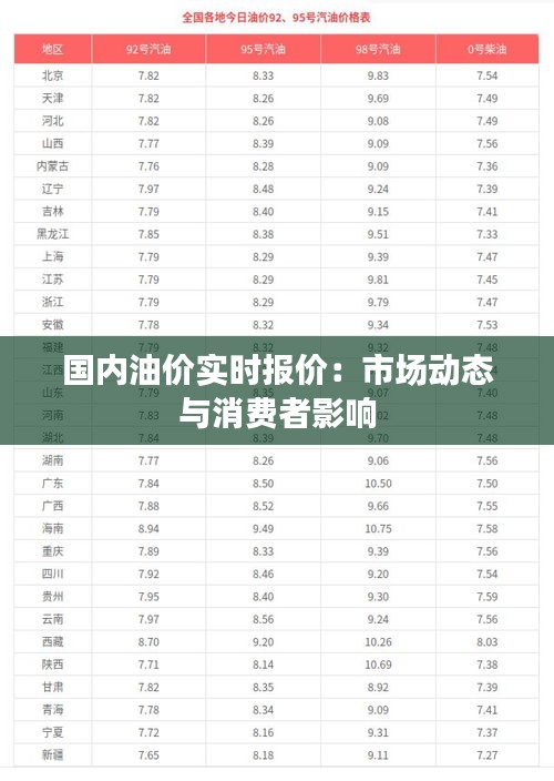 随着我国经济的快速发展,汽车已经成为人们日常生活中不可或缺的交通工具。而汽车燃料——石油,其价格波动直接关系到广大消费者的切身利益。为了使消费者能够及时了解油价变动,各大石油公司及相关部门推出了油价实时报价服务。本文将围绕国内油价实时报价展开讨论,分析其市场动态以及对消费者的影响。