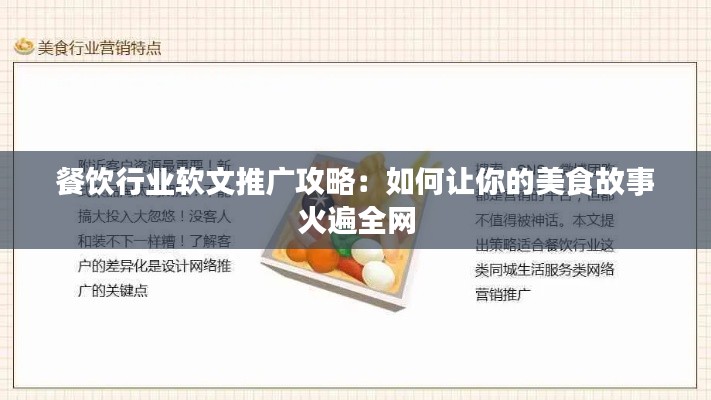标题:餐饮行业软文推广攻略:如何让你的美食故事火遍全网