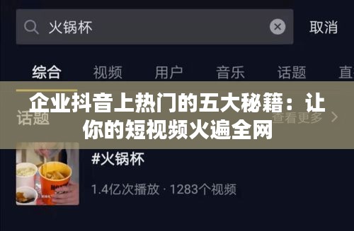 标题:企业抖音上热门的五大秘籍:让你的短视频火遍全网