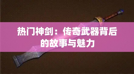 总之,热门神剑不仅是传奇武器的代表,更是人类文化传承的见证。它们的故事和魅力将继续流传下去,激励着一代又一代的人。