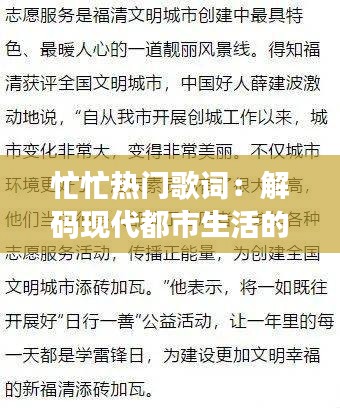 标题:忙忙热门歌词:解码现代都市生活的节奏与心声