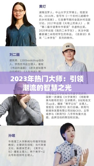 在2023年,世界各领域的热门大师以其独特的智慧和卓越的成就,继续引领着潮流,为人类文明的进步贡献着力量。从科技创新到人文艺术,从商业管理到社会公益,这些大师们以他们的智慧和勇气,成为了时代的标杆。