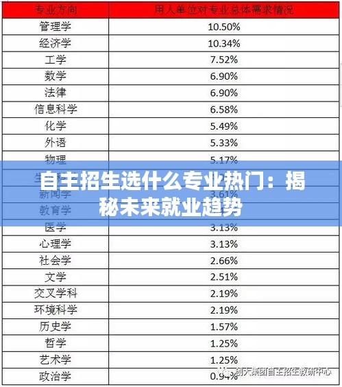 在自主招生中,选择热门专业可以增加就业竞争力,但更重要的是结合自身兴趣和特长,选择适合自己的专业。未来就业市场将更加注重专业技能和综合素质,因此,在专业选择上,不仅要关注热门趋势,还要注重个人能力的培养。