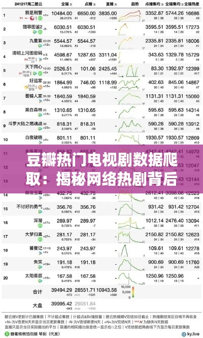 随着互联网的普及,网络电视剧逐渐成为人们休闲娱乐的重要组成部分。豆瓣作为中国最大的在线影视评论网站,其上的热门电视剧榜单成为了观众选择观看的重要参考。然而,这些数据的背后隐藏着怎样的秘密?本文将探讨如何通过数据爬取技术,解析豆瓣热门电视剧的数据,为观众提供更深入的了解。