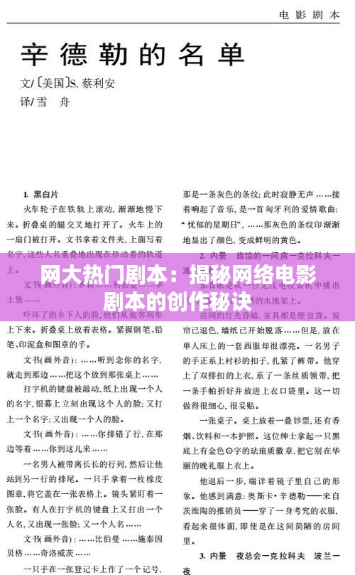 标题:网大热门剧本:揭秘网络电影剧本的创作秘诀