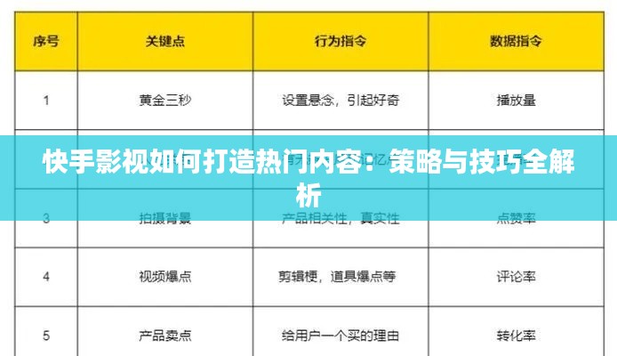 标题:快手影视如何打造热门内容:策略与技巧全解析