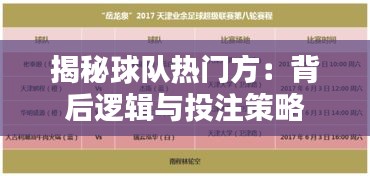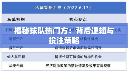 标题:揭秘球队热门方:背后逻辑与投注策略