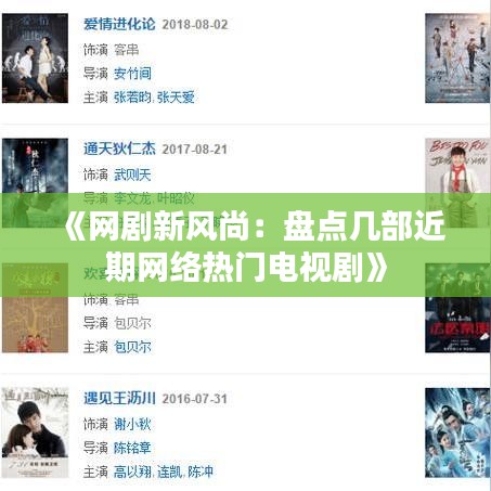 《网剧新风尚:盘点几部近期网络热门电视剧》