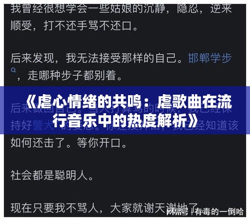虐歌曲的兴起并非偶然,而是与当代社会环境、人们心理状态等多方面因素有关。
