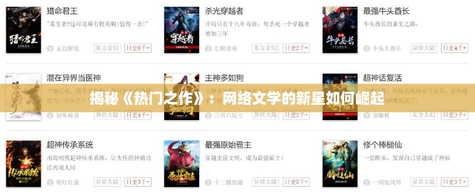 标题:揭秘《热门之作》:网络文学的新星如何崛起