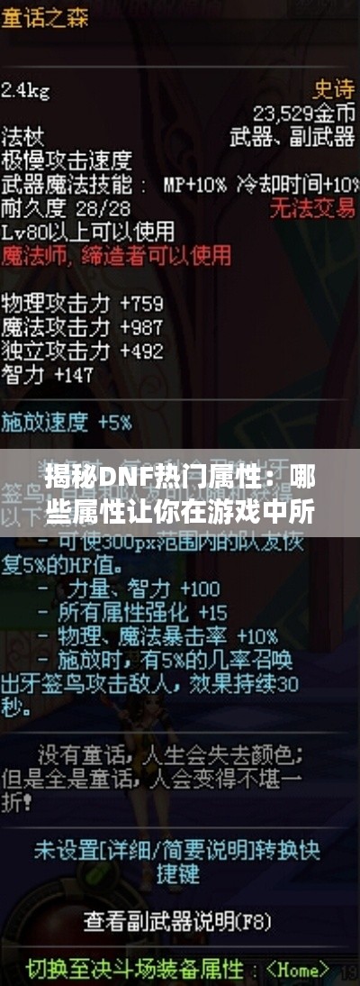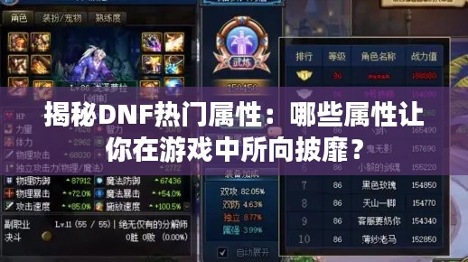 标题:揭秘DNF热门属性:哪些属性让你在游戏中所向披靡?