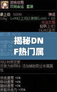 《地下城与勇士》(DNF)作为一款深受玩家喜爱的网络游戏,其丰富的游戏系统和多样的装备属性一直是玩家们津津乐道的话题。在这篇文章中,我们将揭秘DNF中那些热门属性,帮助玩家在游戏中所向披靡。