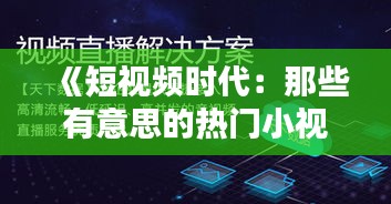 短视频时代,有趣的热门小视频短片层出不穷,它们丰富了人们的精神世界,为我们的生活带来了无尽的欢乐。在享受这些短视频的同时,我们也要学会辨别内容,选择那些有益于身心健康、传递正能量的视频。让我们一起走进短视频的世界,发现更多有意思的热门小视频短片吧!