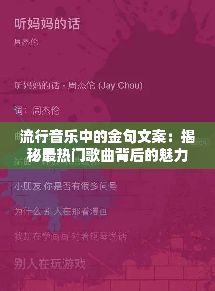 标题:流行音乐中的金句文案:揭秘最热门歌曲背后的魅力