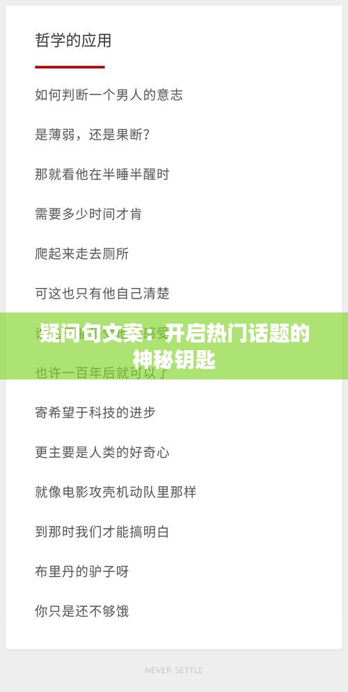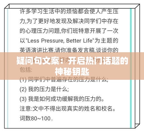 标题:疑问句文案:开启热门话题的神秘钥匙