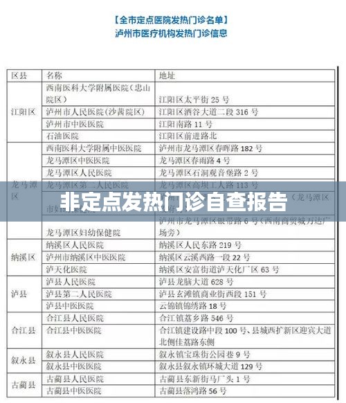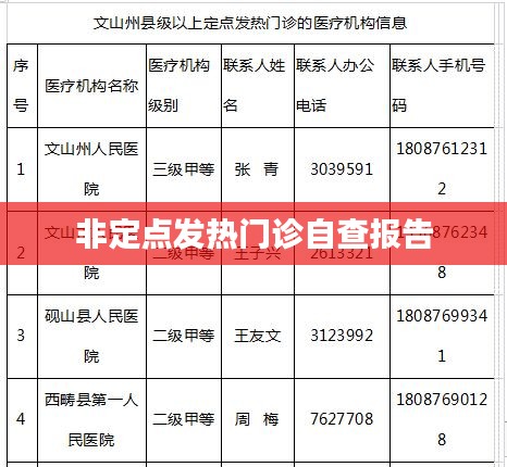随着疫情防控工作的深入推进,非定点发热门诊作为疫情防控的前沿阵地,其运行效率和服务质量直接关系到疫情防控的整体效果。为了确保非定点发热门诊的规范运行,提高医疗服务水平,我们对此进行了全面的自查。以下是对非定点发热门诊自查情况的详细报告。