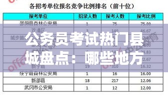 随着公务员考试的逐年火热,越来越多的考生将目光投向了这个职业。而在这场激烈的竞争中,一些县城因其独特的地理位置、丰富的资源和良好的就业前景,成为了考生们争相报考的热门选择。本文将为您盘点一下那些在公务员考试中备受关注的县城,帮助考生们更好地了解报考趋势,为自己的考试之路做好准备。