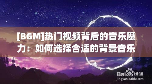 标题:[BGM]热门视频背后的音乐魔力:如何选择合适的背景音乐?