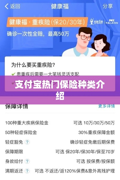 支付宝作为中国领先的第三方支付平台,不仅提供了便捷的支付服务,还推出了多种热门的保险产品。以下是一些在支付宝上热销的保险种类及其特点: