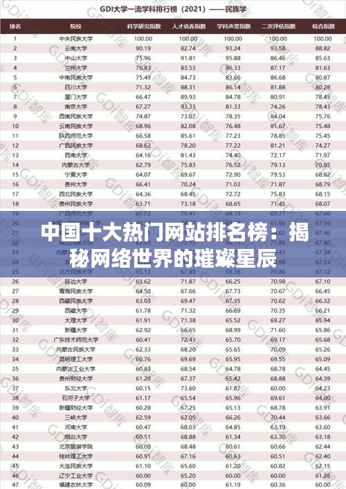 标题:中国十大热门网站排名榜:揭秘网络世界的璀璨星辰