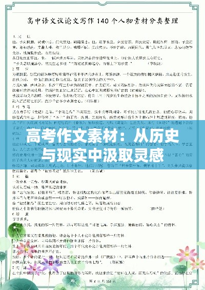 在高考作文中,历史人物是一个常用的素材。他们的事迹不仅能够丰富文章内容,更能激发读者的情感共鸣。以下是一些历史人物,可以作为高考作文的素材: