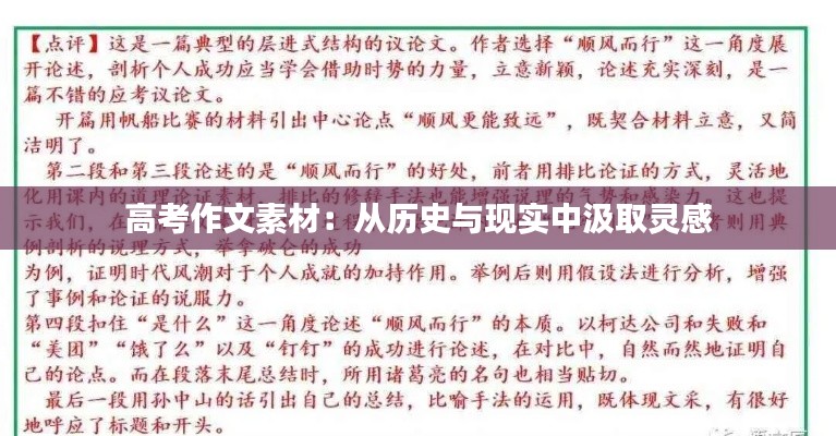 转载请注明来自武汉厨博士餐饮管理有限公司,本文标题:《高考作文素材:从历史与现实中汲取灵感》