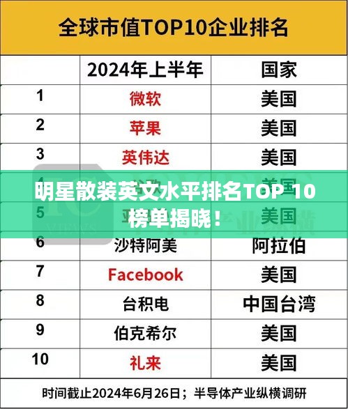 在当今娱乐圈,许多明星不仅以其出色的演技和才艺征服观众,还展示了他们的英语水平,有些明星的英语发音清晰、流畅,甚至达到了散装英文的顶尖水平,以下是明星散装英文排名前十名,他们不仅在演艺界取得了巨大成功,更在英语方面展现了非凡的才华。