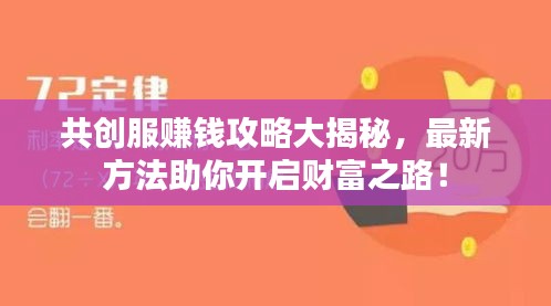 共创服作为一种新兴的赚钱模式,正逐渐受到越来越多人的关注和追捧,通过共创服,人们可以在共享资源的同时实现财富的积累,本文将为大家分享最新的共创服赚钱攻略,帮助大家更好地了解共创服赚钱的方式和技巧,打造属于自己的财富之路。