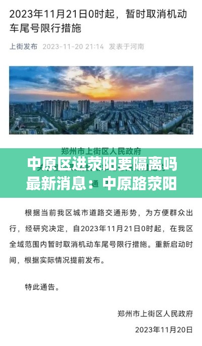 根据荥阳市疫情防控指挥部最新发布的消息,中原区居民进入荥阳的隔离政策如下:
