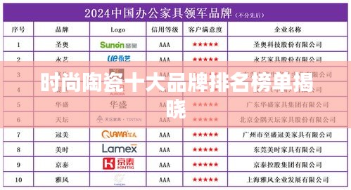 陶瓷作为中华文明的瑰宝,历经千年仍魅力不减,在当今时尚潮流中,时尚陶瓷以其独特的艺术魅力和实用价值,深受消费者喜爱,本文将为您揭晓时尚陶瓷排名前十名,带您领略陶瓷的时尚风采。