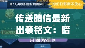 随着游戏的不断更新和平衡调整,每一位玩家都在寻找最佳的出装和铭文搭配来提升自己的战斗力。传送暗信作为一款热门英雄,其出装和铭文的搭配尤为重要。本文将为大家详细介绍传送暗信的最新出装铭文,帮助大家在游戏中更加游刃有余。