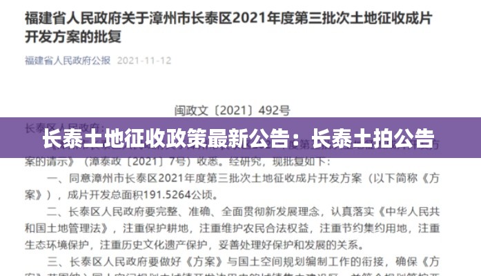 <p>为加强土地资源管理,优化土地利用结构,促进长泰经济社会发展,根据《中华人民共和国土地管理法》等相关法律法规,结合长泰实际情况,现就长泰土地征收政策发布最新公告。</p>