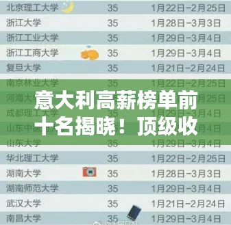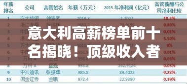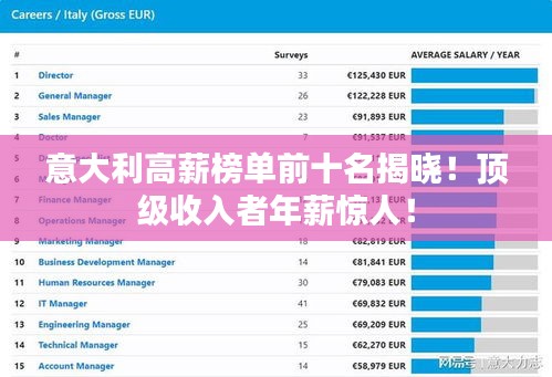 意大利是一个经济发达的国家,其薪资水平也一直处于世界前列,本文将介绍意大利年薪榜排名前十名的相关信息,包括职业、年薪等。