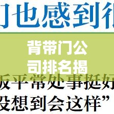 在众多的背带门公司中,居前十名的公司表现尤为突出,这些公司凭借优质的产品质量、创新的设计理念和完善的售后服务,赢得了广大消费者的信赖和好评,代表性的公司有:XX公司、XX集团等,这些公司在背带门行业中具有较高的知名度和影响力。
