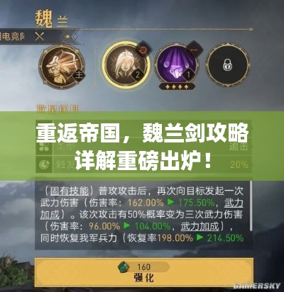 随着《重返帝国》这款游戏的持续火热,越来越多的玩家开始关注游戏中的各种角色与战术,魏兰剑作为游戏中的热门角色之一,其攻略与战术运用备受关注,本文将为大家带来关于魏兰剑的最新攻略,帮助玩家更好地掌握这一角色的使用技巧。