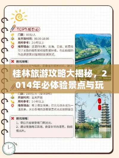 2014年的桂林旅游攻略,带你走进这座美丽的城市,感受其独特的自然风光和人文景观,你可以欣赏到美丽的山水、品尝到美食、体验到丰富的民族文化,希望这份攻略对你的旅行有所帮助。