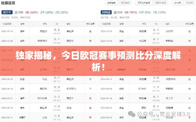 随着欧洲足球锦标赛(欧冠)的临近,球迷们对比赛的预测和期待已经达到了前所未有的高度,本文将根据最新的信息和趋势,对今日欧冠比赛的预测比分进行分析。