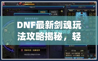 地下城与勇士(DNF)是一款备受玩家喜爱的游戏,其中的剑魂职业因其独特的技能和战斗风格而备受关注,本文将为大家带来DNF最新剑魂玩法攻略,帮助大家更好地掌握这一职业。