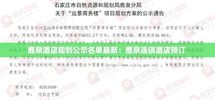 随着我国旅游业的蓬勃发展,酒店行业也迎来了新的发展机遇。近日,鹿泉区政府公布了最新的酒店规划公示名单,引起了广泛关注。以下是对此次公示名单的详细解读。