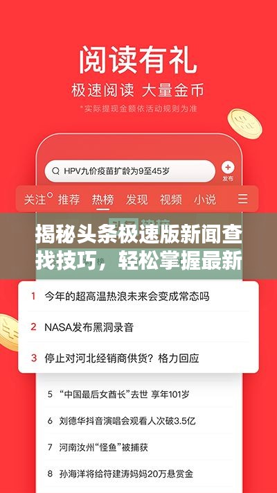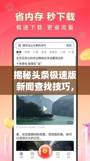 随着移动互联网的普及,新闻资讯已成为我们日常生活中不可或缺的一部分,头条极速版作为一款简洁高效的新闻阅读应用,为广大用户提供了快速获取新闻资讯的平台,本文将介绍如何在头条极速版中查找新闻,帮助您轻松掌握最新资讯。