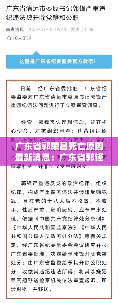标题:广东省郭荣昌逝世,社会各界关注死亡原因最新消息