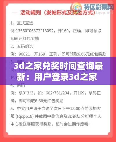 为了方便用户查询兑奖时间,3D之家提供了最新的兑奖时间查询服务。以下是3D之家兑奖时间查询的最新动态: