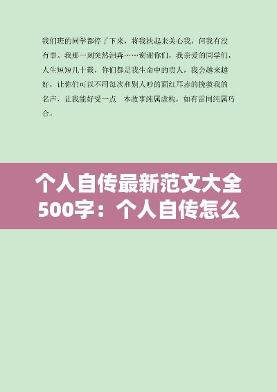 转载请注明来自武汉厨博士餐饮管理有限公司,本文标题:《个人自传最新范文大全500字:个人自传怎么写 范文500字 》
